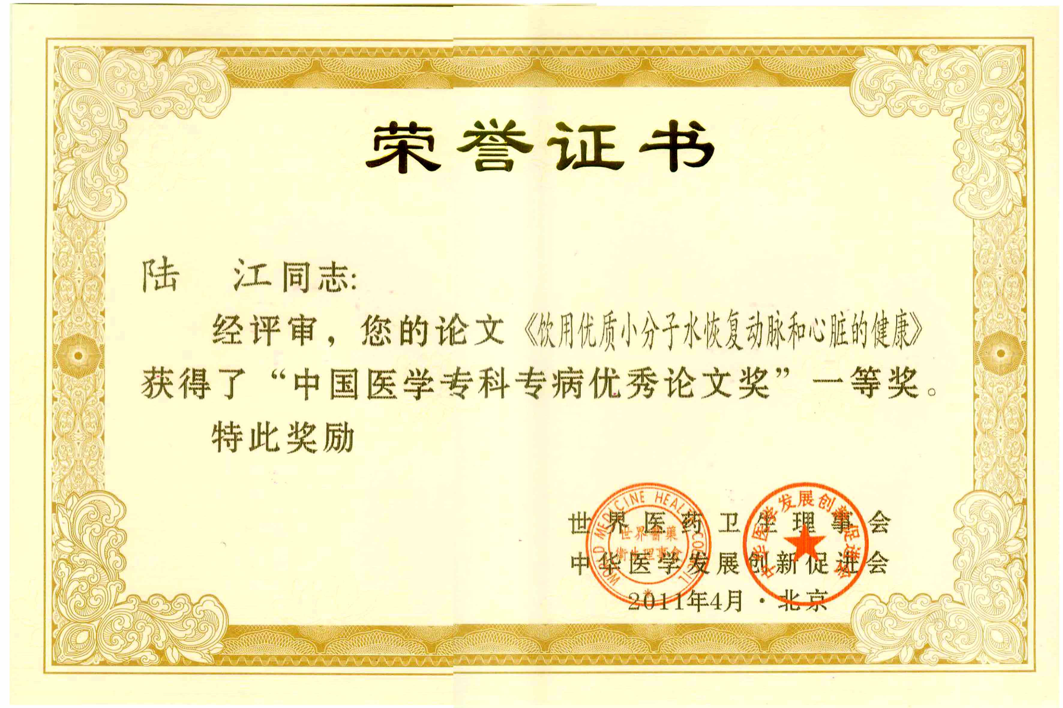 -----我是從事建筑的高工,本來沒有資格去攻克醫(yī)學(xué)難題,卻為了自身健康才扣響醫(yī)學(xué)的大門。由于我1990年患高血壓,因怕中風(fēng)才研究發(fā)明了離子水瓶,我把水處理成微小分子團水,飲用后治愈了高血壓。便于1993年底送到三家省級醫(yī)院做臨床試用4個月。經(jīng)北京和廣西醫(yī)學(xué)專家鑒定:"降脂降壓效果好"," 能擴大心腦動脈流量,改善心腦電圖以及微循環(huán)","對治療心腦動脈粥樣硬化、高血壓、高血脂有良好的醫(yī)療保健作用。""產(chǎn)品的技術(shù)性能和療效達(dá)到了同類產(chǎn)品的國內(nèi)領(lǐng)先水平,經(jīng)廣西醫(yī)學(xué)科學(xué)情報研究所檢索,未見國外有類似報道。"中國醫(yī)學(xué)科學(xué)院張正國教授從美國國立醫(yī)學(xué)圖書館數(shù)據(jù)庫存Medline檢索英俄文資料,均未見類似報告。2000年上市后,我為了對消費者負(fù)責(zé)而繼續(xù)觀察研究,一直通過《信譽卡》和《質(zhì)量跟蹤調(diào)查書》向患者承諾療效,請用戶使用6個月后反饋效果。和脂壓患者飲用2至5個月內(nèi),消除癥狀,停服藥物,血壓正常;冠心病患者飲用3~5個月逐漸減輕至消除心絞痛、房顫等癥狀,不再服藥,飲用1年左右心電圖正常,經(jīng)冠脈造影掃描無明顯狹窄,表明冠心病痊愈。大量患者還反映許多衰弱器官被修復(fù),讓前列腺增生、慢性咽喉炎、慢性氣管炎、支氣管炎、慢性胃炎、腸炎和膽囊炎等不藥而愈;2型糖尿病患者是因為胰島衰弱致病,飲用該水半年至一年,逐漸減藥至停藥,血糖尿糖正常,真正治愈2型糖尿病。中風(fēng)后遺癥患者飲用六七個月,可逐漸減輕至消除肢體和語言障礙,表明飲用該水能讓壽命很長的神經(jīng)元細(xì)胞逐漸修復(fù),奇跡般地恢復(fù)肢體和語言功能。飲用后還使胸腺和脾臟兩個重要的免疫器官被修復(fù)和增強,產(chǎn)生免疫細(xì)胞多,提高了免疫力,使人不生病或少生病。自此, 飲用微小分子團水創(chuàng)造了攻克冠心病、高(低)血壓和糖尿病三大醫(yī)學(xué)難題的奇跡。人們對此感到不可思議,但實踐是檢驗真理的唯一標(biāo)準(zhǔn)。