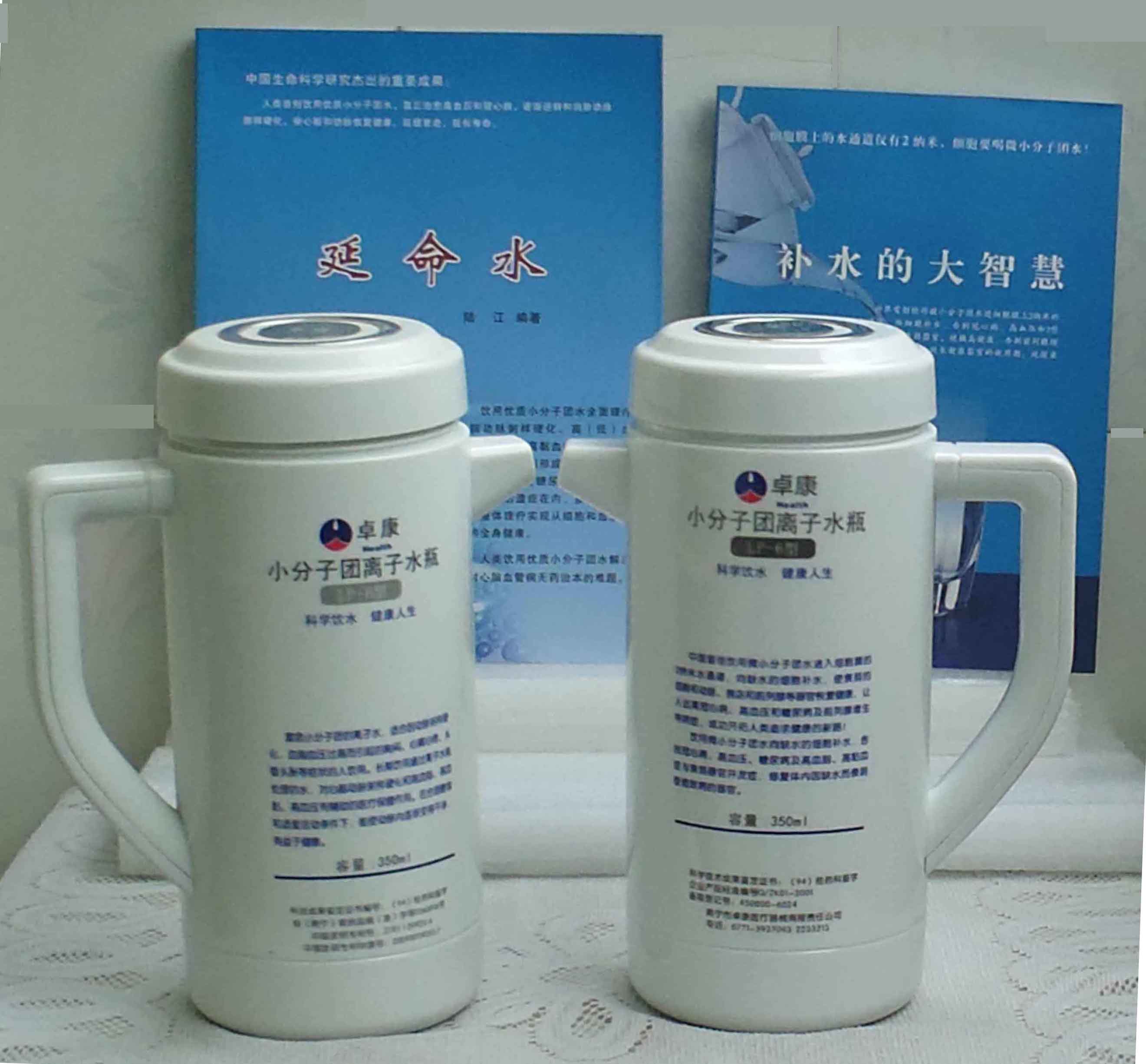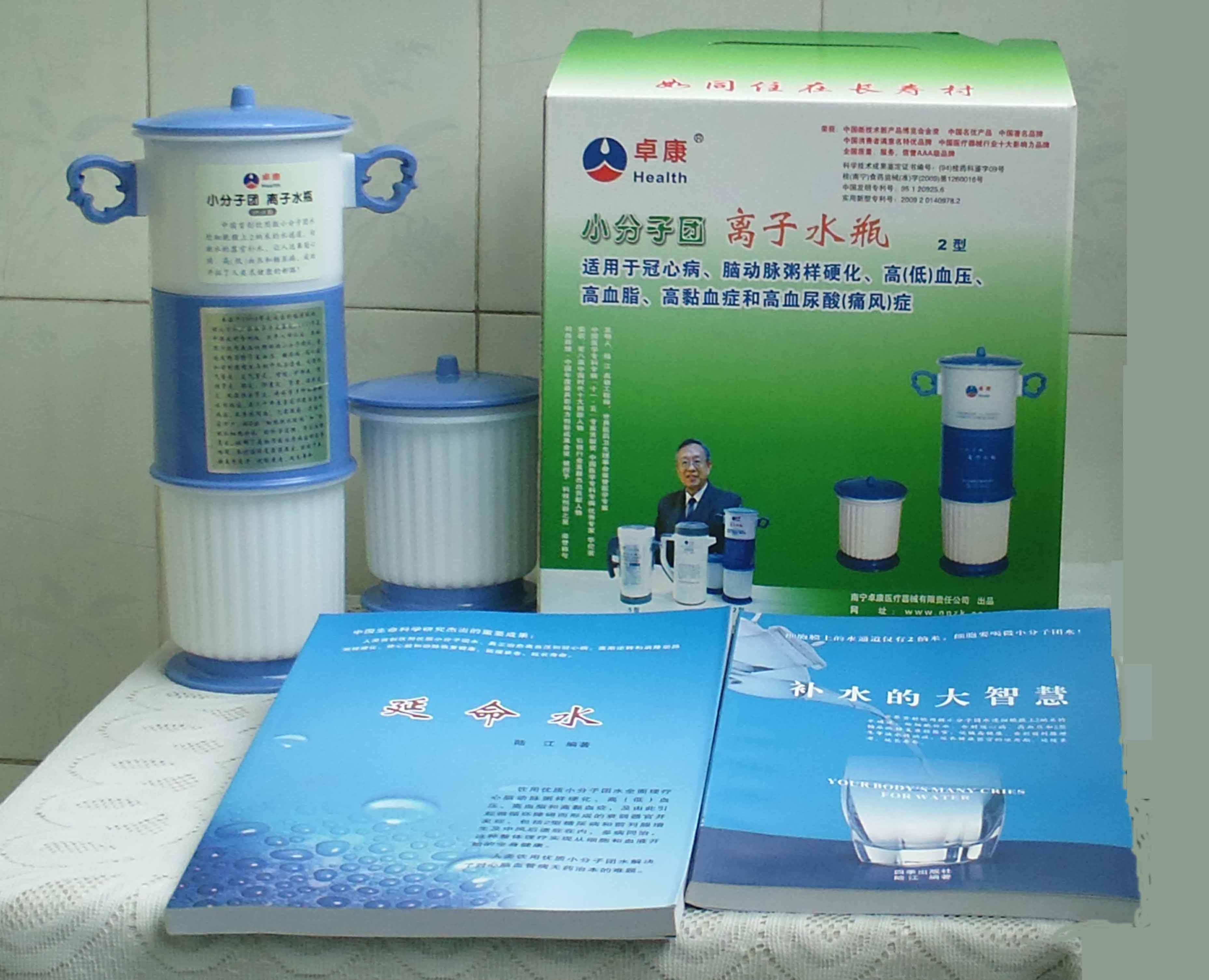 本品大量用戶的使用效果表明,能治愈冠心病、腦動脈硬化、原發(fā)性高(低)血壓、高血脂、高粘血癥、高血尿酸癥(痛風(fēng))和2型糖尿病、衰弱器官并發(fā)癥(前列腺增生、腎衰與尿毒癥)及中風(fēng)后遺癥等療效好。產(chǎn)品配信譽卡。使用壽命30年,不換芯,易清洗。團購優(yōu)惠。從郵局匯款,匯費1%,地址按本頁下方地址、聯(lián)系人寫。從銀行匯款,請點擊[聯(lián)系匯款]欄,從工商銀行匯款,建設(shè)銀行、農(nóng)業(yè)銀行匯款,均免收匯費,匯款后20--30分鐘內(nèi)發(fā)短信,可用微信轉(zhuǎn)帳,均免匯費,微信號即手機號13768308380。匯款后,告知你的姓名和地址,我公司聯(lián)系人手機號是:13768308380。卓康牌離子水瓶為我公司獨家生產(chǎn),郵購產(chǎn)品配《補水的大智慧》彩印書一本,另配四季出版社出版的新書《補水的大智慧》一本,并配光盤一張(含央視主持人釆訪陸江的對話視頻)。目前市場和"淘寶網(wǎng)"上有人兜售假冒的偽品,望讀者審察辯別真?zhèn)?,造假者剽竊假冒本公司的各種認(rèn)證、獲獎獎項、專利號和外包裝盒上的中英文字,包括科技成果的鑒定意見等,請讀者注意防偽。如何識別假貨?已經(jīng)買了假貨怎么辦?(請點擊[打假掠影][打假掠影])。